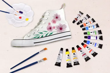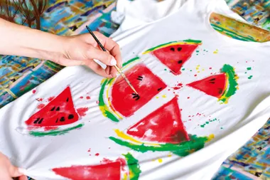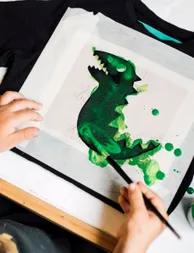 A festeni kívánt anyagot helyezd lehetőleg egy sima felületre. A festékeket ecsettel alkalmazd. A munka befejezése után hagyd megszáradni a megrajzolt mintákat.