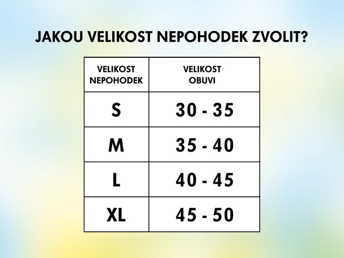 A szélsőséges méretek esetén válassz méretet a lábbeli típusa és talpa alapján. A szokványos típusú lábbelik (félcipők, sportcipők, mokaszinok) NEPOHODEK méretei megfelelnek (elégségesen alkalmazkodnak a lábbelikhez), masszív lábbelik esetén (farmerek, trekking cipők) inkább válassz nagyobb méretet.