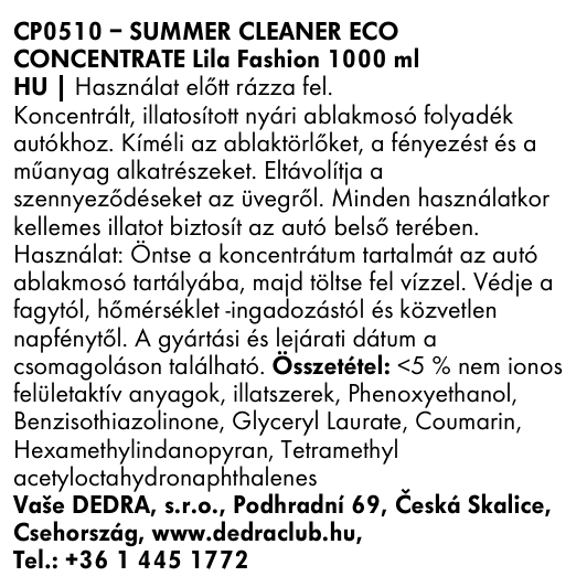 Illatosított nyári készítmény szélvédőmosókba autók számára, SUMMER CLEANER eco concentrate, LILA FASHION, 1000 ml.