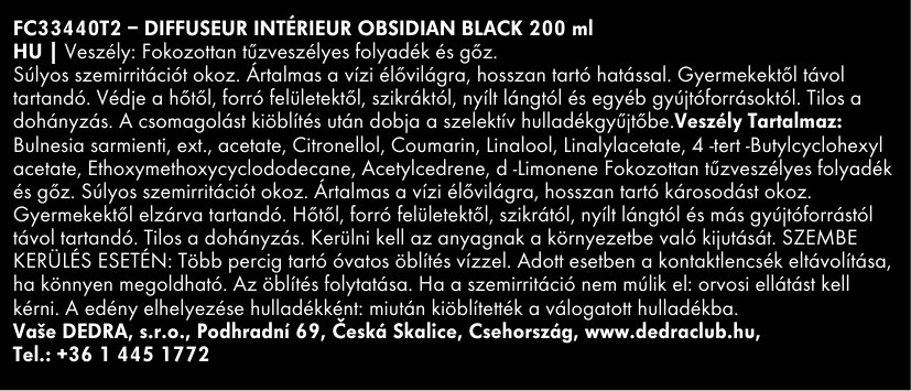 Illatosítsd otthonodat és válaszd ki azt az illatot, amely hozzá tartozik! Üdvözlő illatodnak tükröznie kell téged és mindazt, amit szeretsz, valamint a stílust, amit képviselsz. OBSIDIAN BLACK mély harmóniában van cédrussal, pacsuli, vaníliával és tonkával.A guajakfa pézsmával egy megkerülhetetlenül érzéki nyomot alkot azok számára, akik a luxust és exkluzivitást keresik.