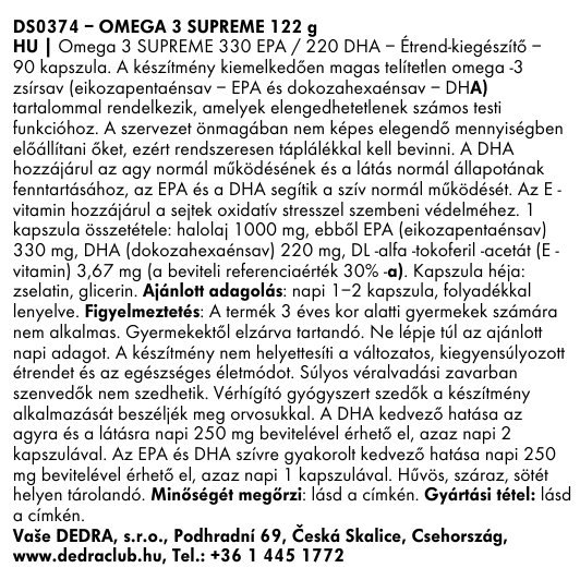 OMEGA 3 SUPREME 1000 mg | 1 kapszula = 330 mg EPA & 220 mg DHA + Vitamin E | szív, agy & látás támogatása | 90 kapszula