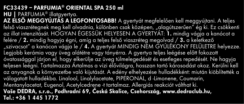 ORIENTAL SPA | szója illatgyertya | PARFUMIA® | 250 ml
