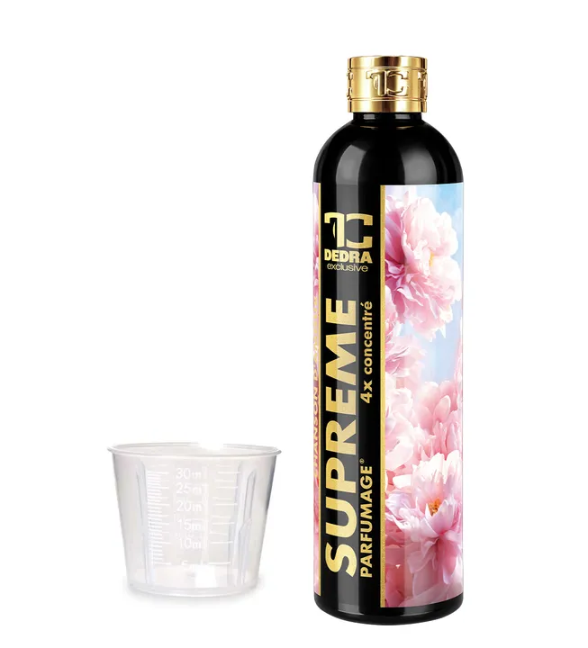 PARFUMAGE® SUPREME CHANSON D´AMOUR – 4× kisebb adag, 4× nagyobb hatás. Csak 5–15 ml elegendő a mosáshoz, és a ruhája intenzív és hosszan tartó illatot kap. Élénkíti a színeket, semlegesíti a mosószermaradványokat, és kíméletes a bőrhöz és a mosógéphez is. Kisebb adag – nagyobb hatás, 95 °C-ig alkalmas.