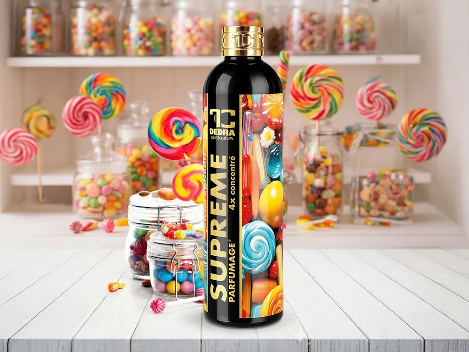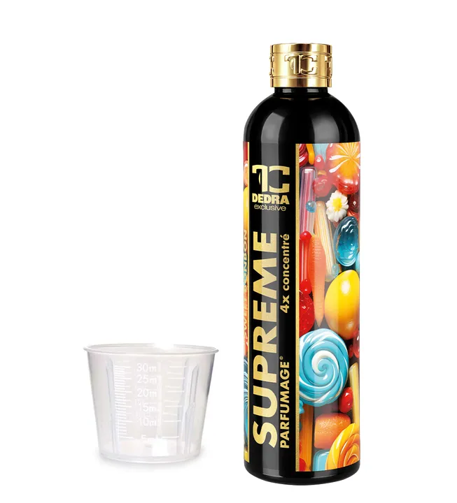 PARFUMAGE® SUPREME SWEET BONBON – 4× kisebb adag, 4× nagyobb hatás. Csak 5–15 ml elegendő a mosáshoz, és ruhái intenzív és tartós illatot kapnak. Felfrissíti a színeket, semlegesíti a mosószer maradványait és kíméletes a bőrhöz és a mosógéphez. Kisebb adag – nagyobb hatás, akár 95 °C-ig is.