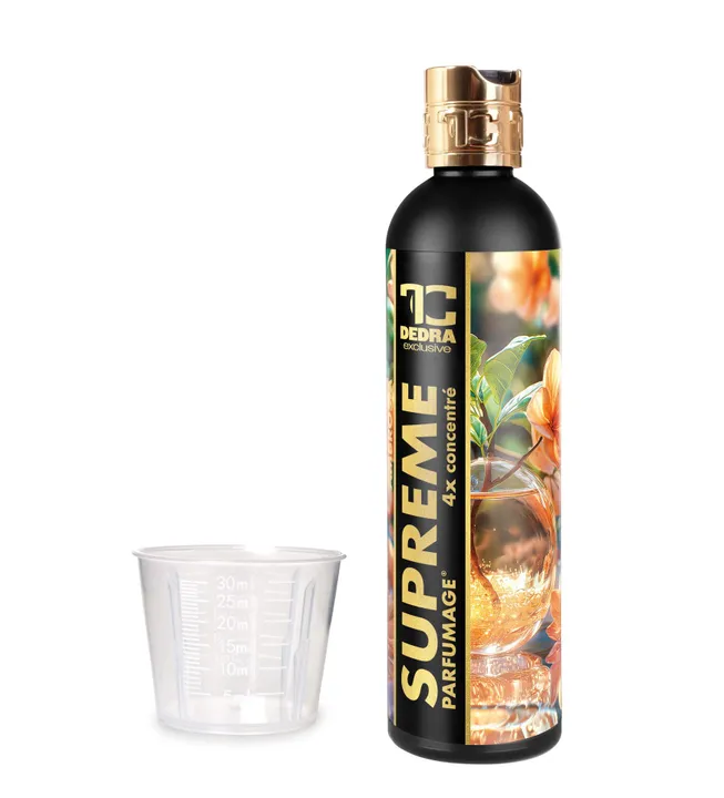 PARFUMAGE® SUPREME AMBROSIA – 4× kisebb adag, 4× nagyobb hatás. Elég csak 5–15 ml mosáshoz, és a ruhája intenzív és tartós illatot kap. Élénkíti a színeket, semlegesíti a mosószer maradványait, és kíméletes a bőrhöz és a mosógéphez. Kisebb adag – nagyobb hatás, akár 95 °C-ig alkalmas.