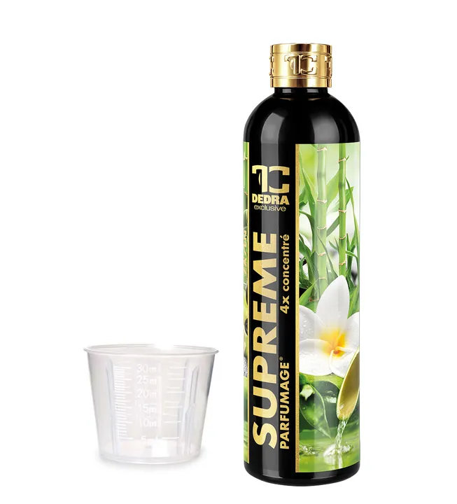 PARFUMAGE® SUPREME ZAZEN – 4× kisebb adag, 4× nagyobb hatás. Csak 5–15 ml elegendő a mosáshoz, és a ruhái intenzív és tartós illatot kapnak. Felfrissíti a színeket, semlegesíti a mosószer maradványokat, és kíméletes a bőrhöz és a mosógéphez. Kisebb adag – nagyobb hatás, akár 95 °C-ig.