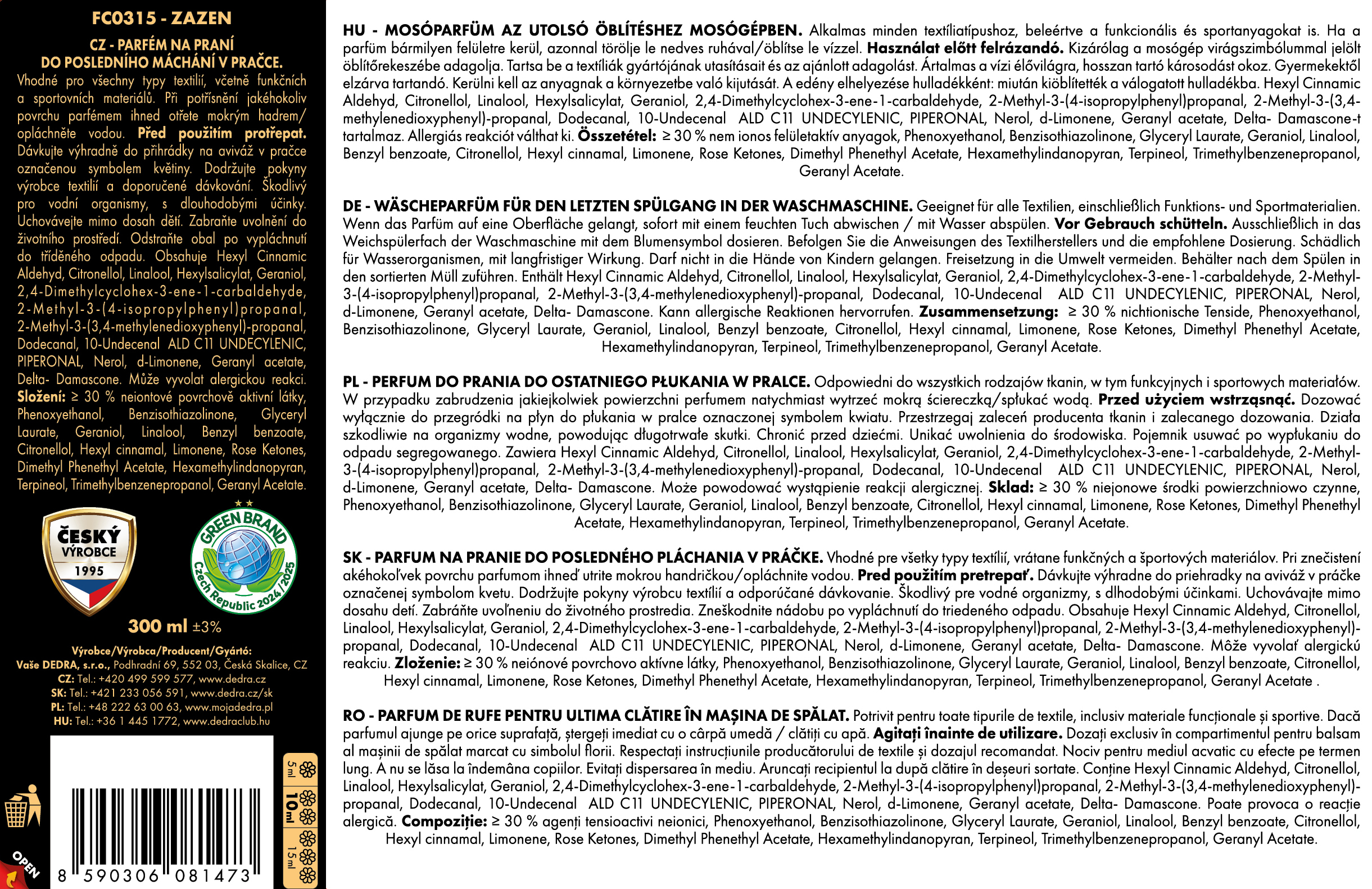 PARFUMAGE® SUPREME ZAZEN – 4× kisebb adag, 4× nagyobb hatás. Elég csak 5–15 ml mosáshoz, és a ruhája intenzív és tartós illatot kap. Élénkíti a színeket, semlegesíti a mosószer maradványait, és kíméletes a bőrhöz és a mosógéphez is. Kisebb adag – nagyobb hatás, 95 °C-ig ajánlott.
