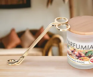 Az elegáns PARFUMIA® olló segít könnyedén és pontosan levágni a kanócot, még mélyebb vagy keskenyebb üvegtartókban is.
