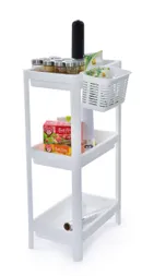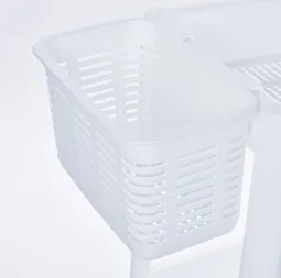 Többé nincs kihasználatlan sarok! PERFOR téglalap alakú 3 szintes állvány perforált polcokkal és praktikus fali kosárral van tervezve, hogy elférjen a legszűkebb helyeken is. Tökéletesen illik a mosógép, konyhapult vagy fürdőszoba mellé. Univerzális felhasználását a gyerekszobában vagy a dolgozószobában is értékelni fogja – ideális játékok, könyvek, magazinok és toalett szükségletek tárolására. A perforált polcok ráadásul biztosítják a szellőzést és a dolgok áttekinthető rendezését.