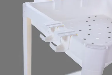 – 2 kiegészítő kampó – akaszthatsz szivacsokat, mosdókesztyűket, keféket, zacskókat stb.