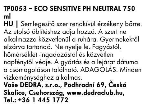 PH NEUTRAL | Mosási maradványok semlegesítő | érzékeny bőr & parfümmentes | SENSITIVE ECO | 750 ml