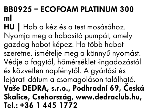 PLATINUM | kímélő habszappan kézre és testre | 300 ml