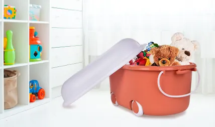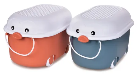 🧸 A rendrakás a szobában szórakozás is lehet! A 20 literes kapacitású PLAY görgős doboz úgy lett megtervezve, hogy a takarítás a gyerekek számára is élvezet legyen. A 4 keréknek és fogantyúnak köszönhetően a gyerekek könnyen el tudják vinni, ahová játszani szeretnének, majd erőfeszítés nélkül vissza tudják pakolni. Az erős műanyag védi a tartalmát a portól, a klipszes fedél megakadályozza a játékok kiömlését, a cuki részletek – szemek, orr és tappancsok – pedig játékos megjelenést adnak a doboznak, amely részévé válik a gyermeki szórakozásnak.