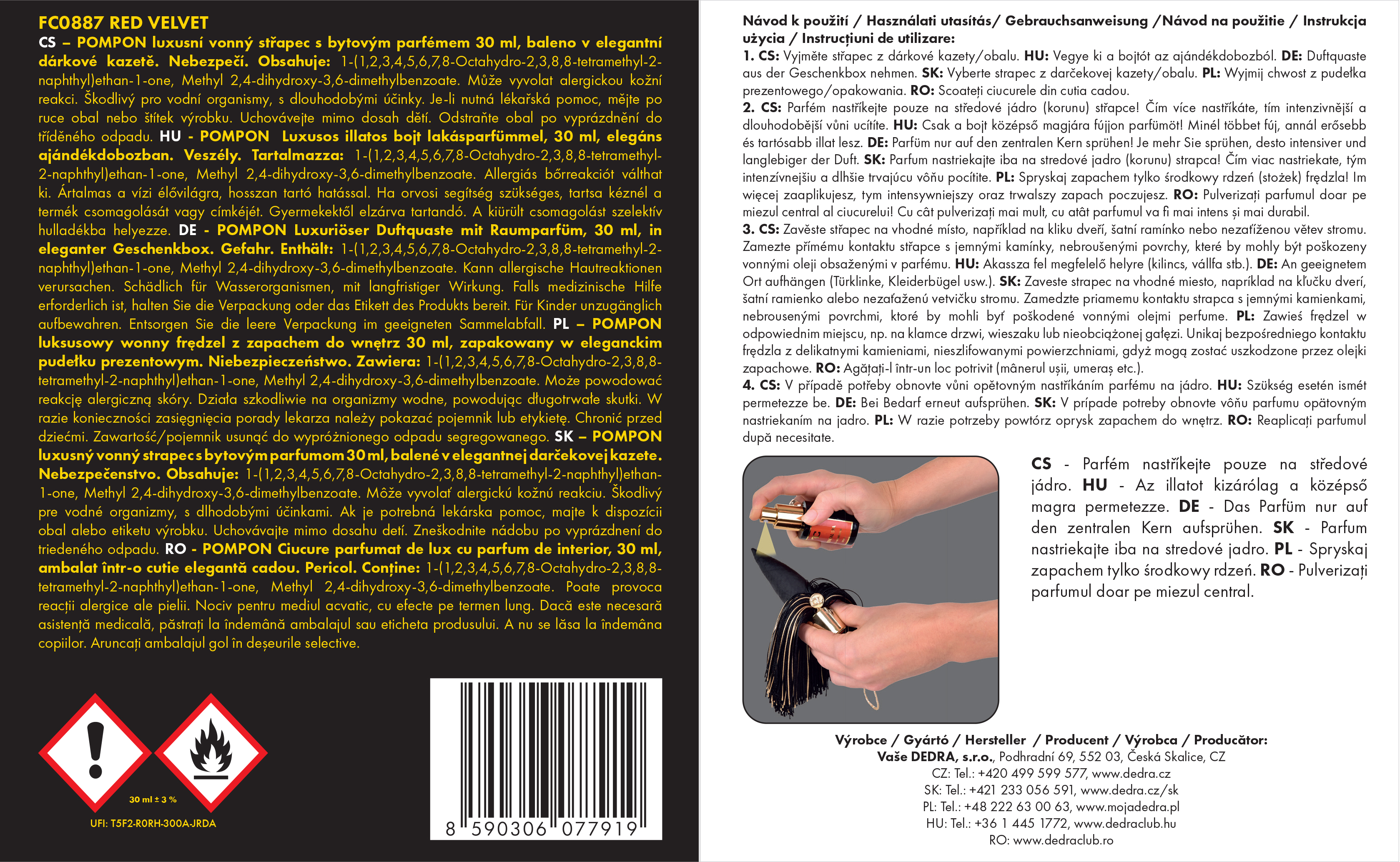 A POMPON elegáns függő dekoráció hosszú tartós RED VELVET illatával fogja betölteni az enteriőröket – keleti virágparfüm sáfránnal, jázminnal, borostyánnal és pézsmával. Kézműves kiegészítő ajándékdobozban, amely barátságosabbá teszi a szekrényt, az autót és a szobát.