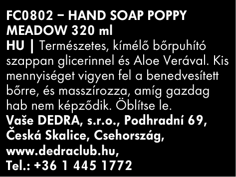 A POPPY MEADOW nem csupán egy folyékony szappan – ez egy harmonikus rituálé a gondozás és az illat terén, amely a hétköznapi pillanatokat különlegessé varázsolja.
