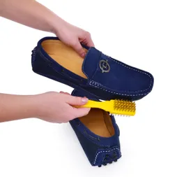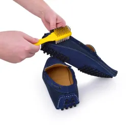 PRAKTIK 3v1 kefe a csiszolt bőr, nubuk, velúr és velúr számára. A sárgaréz drótok eltávolítják a durva szennyeződéseket, a gumi rész simává teszi a felületet, és az oldalsó ecset kitisztítja a varrásokat és a nehezen hozzáférhető helyeket. Újraéleszti a lábbeli kinézetét anélkül, hogy kárt tenne az anyagban.