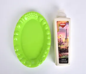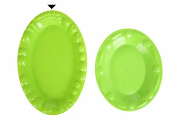4 darab zöld ovális tálca tartós műanyagból (25,3 cm). Ütésálló edények gyerekeknek és kerti partikról. Mosogatógépben, mikróban, hűtőben és fagyasztóban is használható.