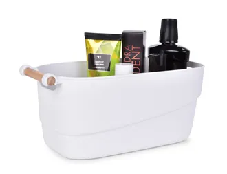 Praktikus szervező bambusz fogantyúval (34 cm) az elegáns rendben tartásához a szekrényekben, polcokon és állványokon. Ajánlott fehérnemű, kozmetikumok, játékok vagy konyhai kiegészítők tárolására.