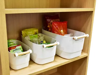 Szeretnél otthon tökéletes áttekintést és rendet egy kis eleganciával kiegészítve? A PRAKTIK bambusz fogantyúval átalakítja a polcaidat stílusos, átlátható és funkcionális rendezett hellyé. Csak húzd ki, és azonnal hozzáférhetsz mindahhoz, amire szükséged van – legyen szó fehérneműről, kozmetikumokról vagy konyhai kiegészítőkről.