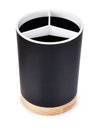 A gyakorlati PRAKTIK állvány és csepegtető (⌀12 × 16,5 cm) műanyagból és fából készült, és rendezetten tartja az evőeszközöket és konyhai eszközöket a mosogató mellett. A perforált alj biztosítja a víz lefolyását és a gyors száradást. Multifunkcionális szervező a mindennapi konyhai használathoz.