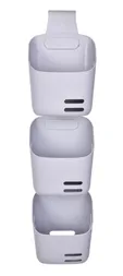 A szürke színű PRAKTIK szervező, függesztő horgonnyal. Mérete 15,5 × 13 × 10,5–17 cm, strapabíró műanyag szellőző nyílásokkal. Moduláris rendszer – több darabot összekapcsolhat. Fürdőszobába, konyhába és gardróbba is alkalmas.