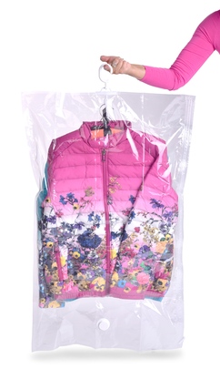 - Akasszd a zsákot a szekrénybe vagy tárold tárolóhelyen – a ruhák védve maradnak és minimális helyet foglalnak el.