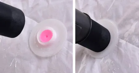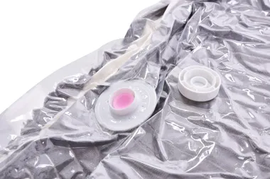 - Helyezd a porszívó fejét a szelephez és szívj ki levegőt, amíg a zsák a minimumra nem zsugorodik.