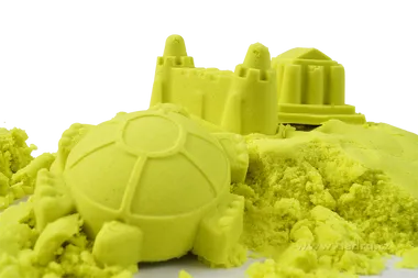 PUFI varázslatos kinetikus homok 1,9 kg – zöld-sárga mix felfújható homokozóval, formaformázókkal és dobozzal. Puha, formálható, nem szétszóródik, nem piszkít és soha nem szárad ki. Támogatja a finommotorikát és a kreativitást. Homokozás bármikor, még otthon is.