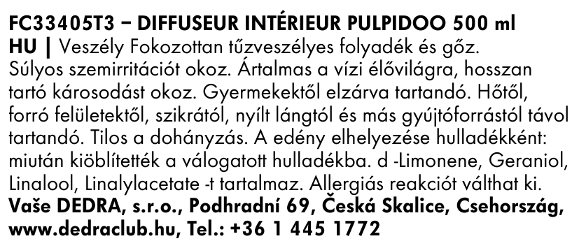 - nagy 500 ml-es térfogat játékosan illatosítja a nagy bejárati csarnokokat, szállodai recepciókat, panziókat, tágas irodai területeket, üzleteket, de akár házakat vagy tágas lakásokat....