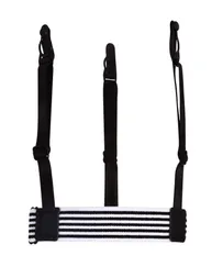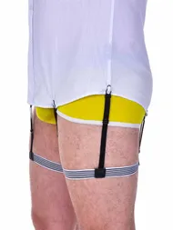 - Az feszítőt a lábra rögzítjük, és a három rugalmas szalag a ing szélét rögzíti. A szalagok helyén tartják az inget, így felöltözetten nézhetsz ki egész nap.