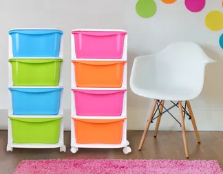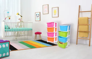- A gyerekszobában – játékok, ceruzák és kreatív eszközök számára.