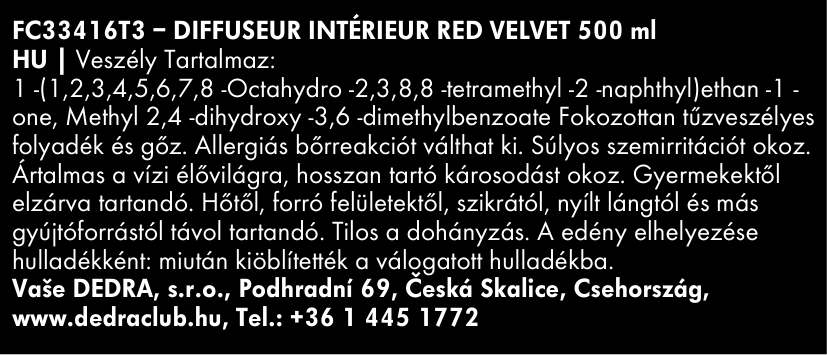 Illatosítsd otthonod és válaszd ki a neked megfelelő illatot! Az üdvözlő illatodnak tükröznie kell téged és mindazt, amit szeretsz, valamint azt a stílust, amit képviselsz. RED VELVET luxus orientális virágos parfüm nőknek és férfiaknak. Különleges alkalmakra teremtve. Vonzó csomagolásban arany fóliával.
