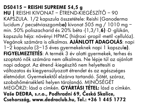 REISHI SUPREME 505 mg | 50 % poliszacharidok és 20 % béta-glükánok | immunitás, vitalitás és keringési rendszer | 90 kapszula