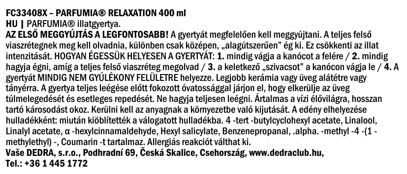 RELAXÁCIÓ | szója gyertya | 2 kanóc | PARFUMIA® | 400 ml