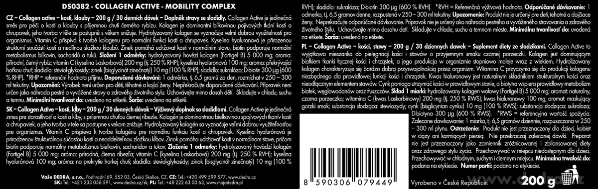 - 1x COLLAGEN ACTIVE szinergikus ital ízületek, csontok és aktív élet számára Fortigel® B-vel, C-vitaminnal, cinkkel és hialuronsavval, fekete ribizli ízben, 200 g (30 adag)