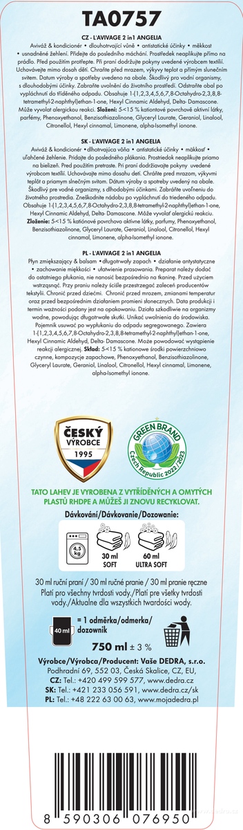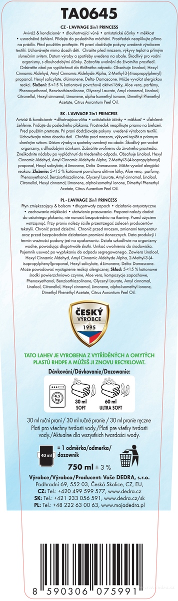 A KOMPLEXNÍ PRANÍ készlet a BIANCO LUMINÉ fehér ruhákhoz való mosóport és 2 öblítőt, a L'AVIVAGE PRINCESS-t és ANGELIA-t ötvözi. Tisztaságot, puhaságot és tartós illatot biztosít a ruháknak. Praktikus megoldás körülbelül 50 mosáshoz a textileszközök napi ápolására. További információk