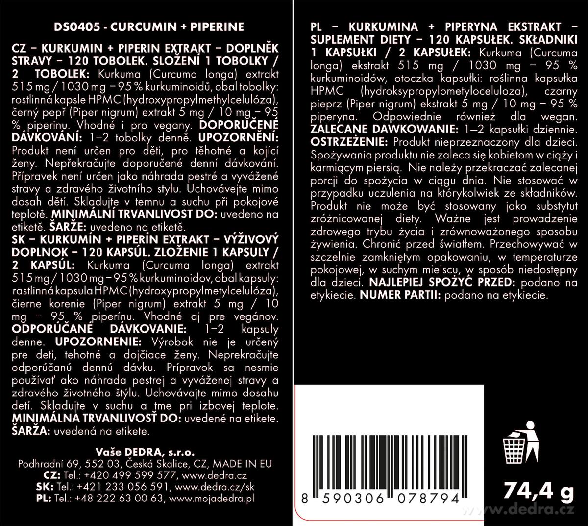 CURCUMINE + PIPERINE 515 mg, 120 db.