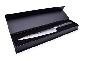 A SAKAI 67 RÉTEG kés sorozatot egy elegáns fekete karton díszdobozban, mágneses záródással kínálják.