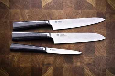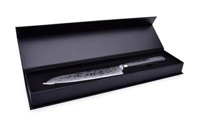 A SAKAI 67 RÉTEG kés sorozat luxus fekete karton ajándékdobozban található mágneses záródással.