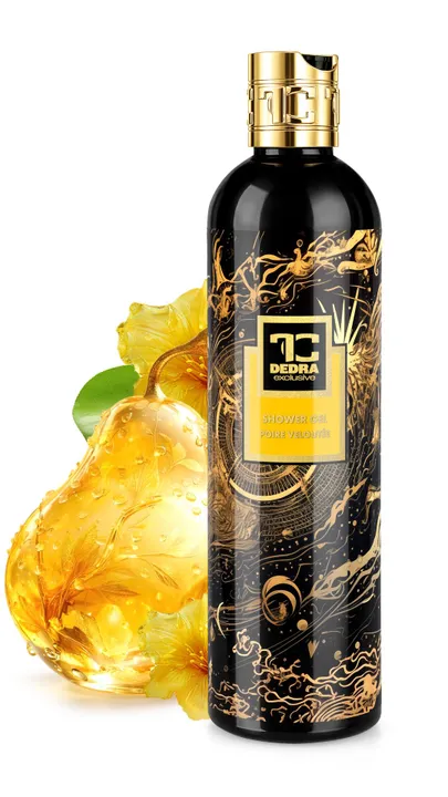 SAMETOVÁ HRUŠKA – luxusos tusfürdő az FC DEDRA exclusive kollekcióból, édes körte, rózsa és pacsuli illatával, meleg borítékként ámbra és pézsma alapon. Glicerinnel és aloe verával a selymes, lágy bőrért. SLS, SLES és parabének nélkül.