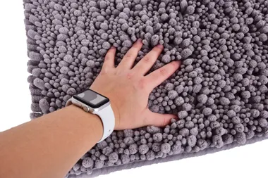 SASANKA® WC szőnyeg 50 × 45 cm-es finom 3D mikroszálas anyagból szürke színben. Extra puha, nedvszívó és csúszásgátló. A szál magassága akár 3 cm. Praktikus kivágás a falikút számára.