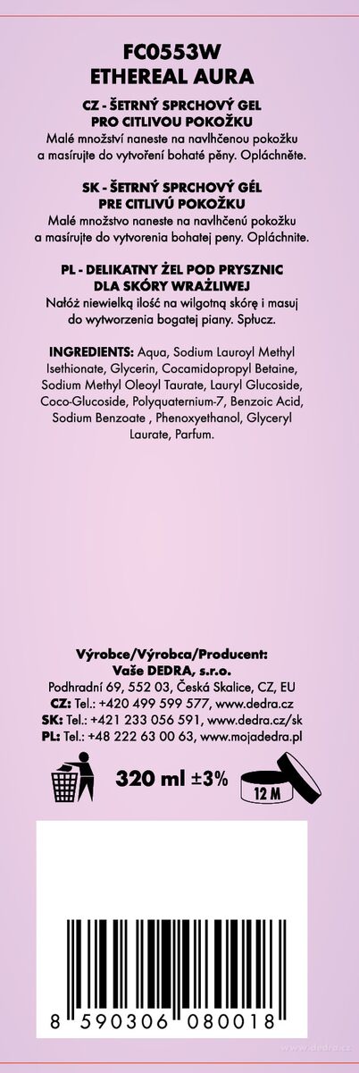 2+1 SENSITIVE ETHEREAL AURA készlet – 2× finom tusfürdő + 1× hidratáló szappan érzékeny bőrre. Kíméletes napi ápolás, amely segít megőrizni a bőr kényelmét és egyensúlyát. Ideális választás azok számára, akik finom és hatékony termékeket keresnek.