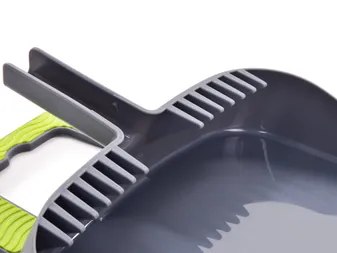 - Fésűző fogak a lapát szélén eltávolítják a port és a hajat a seprűről