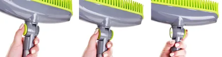 (a lapát tetején található praktikus fogak, amelyek könnyedén megtisztítják a seprűt a hajaktól és portól)