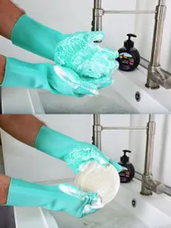 A SILI SASANKA® szilikon kesztyű, amelynek tenyerén sörték találhatók, ideális az edények, fürdőszobák, autók mosásához, valamint a textíliákon lévő szőr eltávolításához. Tökéletes továbbá kárpittisztításhoz vagy háziállatok fésüléséhez is. Univerzális méret, 2 db/csomag.