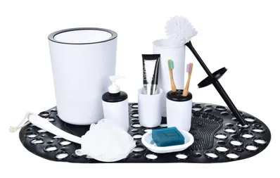 A fürdőszobai készlet SPA időtlen fehér-fekete kombinációban modern stílust és tiszta dizájnt ad a fürdőszobájához. Hat praktikus kiegészítővel teljes berendezést kap a mindennapi higiénia és a rend fenntartásához.