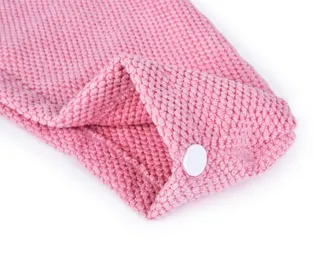 A korall rózsaszín szín vidám és elegáns akcentust ad a fürdőszobának. A turbánt nemcsak zuhanyzás után használhatod, hanem hajfestéshez hajfestéshez vagy bőrápoláshoz is.
