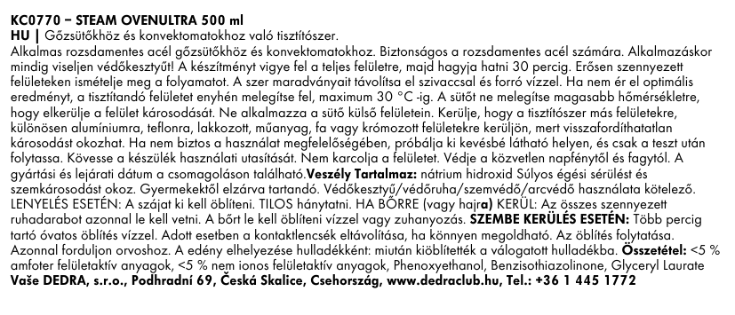 STEAM OVEN | Professzionális tisztító konvekciós sütők és gőzölők számára