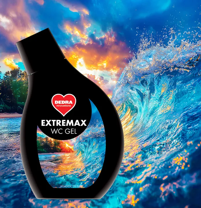 Az EXTREMAX WC GEL egy sűrű, környezetbarát gél, frissítő Atlantic Ocean illattal, amely tisztítja a WC-ket, bidéket és piszoárokat. Ötször több hatóanyagot tartalmaz a vízkő és szennyeződések ellen. Az új generációs ECO felületaktív anyagoknak köszönhetően már 3 öblítés után hat. 500 ml-es kiszerelés. Zuhanykabinokhoz is alkalmas.