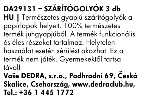 A gyapjú SZÁRAZÓGOLYÓ természetes, ökologikus és újrahasználható alternatíva a hagyományos szintetikus törlőkendők helyett. Segítik a meleg levegő áramlását, elválasztják a ruhát a dobban, ezáltal akár 20%-kal csökkentik a szárítási időt – időt, energiát és pénzt takarítva meg. Ezen kívül könnyen illatosíthatóak ruhaparával az illatos végeredményért.